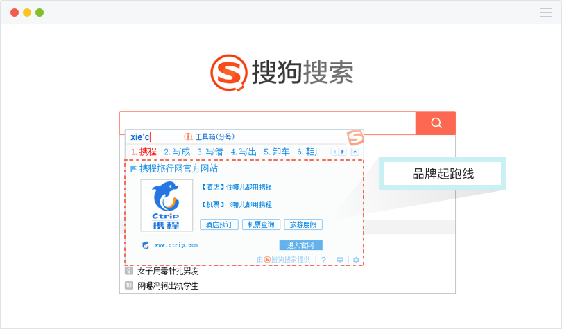 1.PC端搜索结果页、移动端搜索结果页、PC搜狗输入法三端展现;