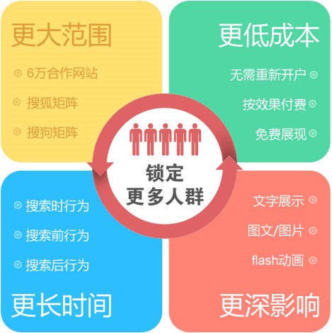 搜狗图文推广是以搜狐、搜狗矩阵及众多优质网络媒体资源为平台,根据用户行为特征及潜在兴趣和需求,以图片、文字、flash动画等多种展现形式,进行个性推送的精准网络推广方式。